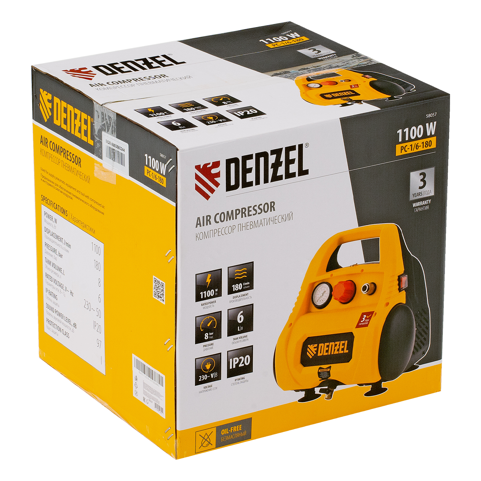 Поршневой компрессор DENZEL РС 1/6-180: характеристики